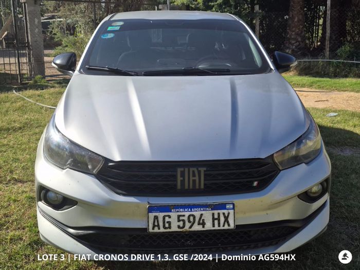 3°) FIAT CRONOS DRIVE 1.3. GSE, SEDAN 4 PUERTAS, Año 2024, Dominio AG594HX. Base: $ 27.500.000-.