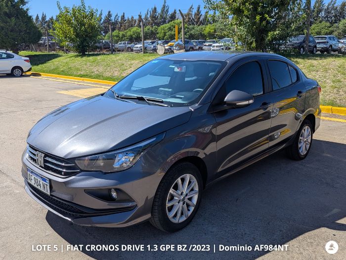 5°) FIAT CRONOS DRIVE 1.3 GPE BZ, SEDAN 4 PUERTAS, Año 2023, Dominio AF984NT. Base: $ 24.000.000- y